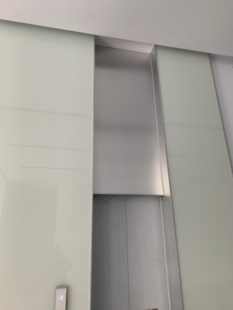 بعد از نصب قطعات استیل کناری نصب شیشه ها انجام شد